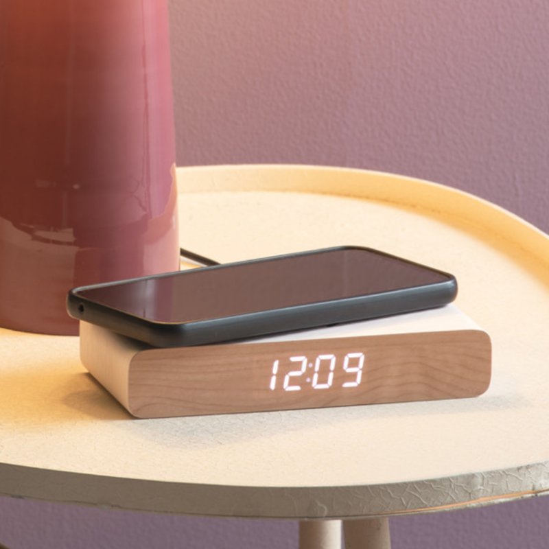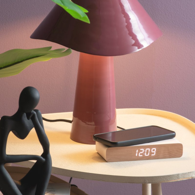 Retro Flat LED, slim design with a modern accent. Karlsson's Retro Flat LED alarm clock combines a sleek, slim design with warm wood accents and a subtle touch of color.