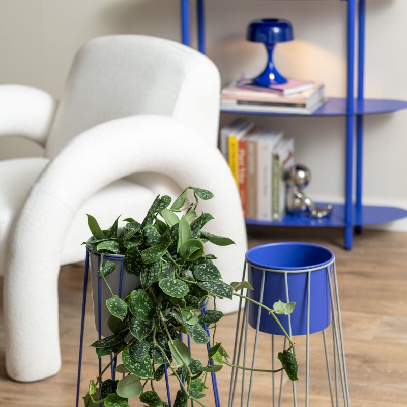 Make a bold contemporary statement with this striking iron hall table / bookcase / display unit, finished in a vibrant cool-toned blue that instantly elevates any interior.