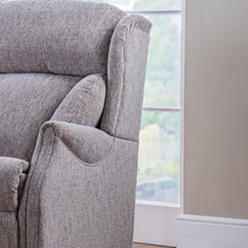This recliner chair is available in 3 sizes, Grande, Standard and Petite, with Dual Motor Riser Recliner chair models having an optional adjustable headrest.