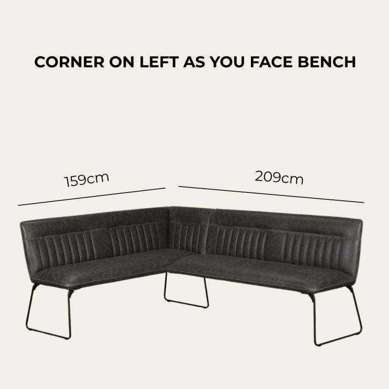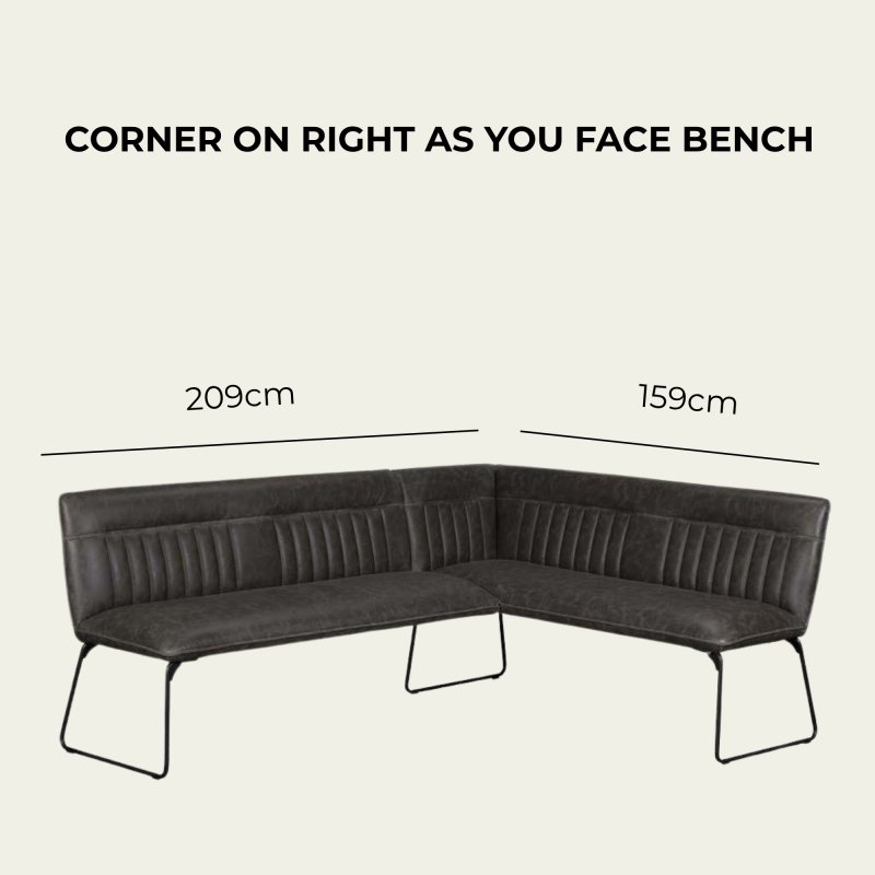 Designed with both style and support in mind, this corner bench features elegant stitched back detailing that adds texture and visual interest, while the extra-thick seat padding ensures a comfortable seating experience for family meals or entertaining guests. The sturdy black powder-coated metal frame provides a strong, stable foundation and enhances its contemporary industrial appeal.