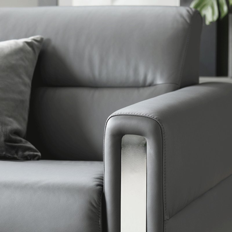 Classic in its beautiful simple lines, with stylish details in steel on the armrests, the sloping back features a fine horizontally stitched detail for a truly unique look.
