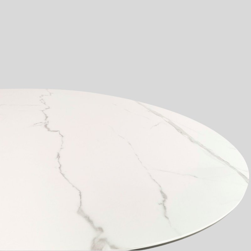 The Giotto Round Ceramic Table is a beautiful 1.6m Table on Dark Metal Cylinder Pedestal.