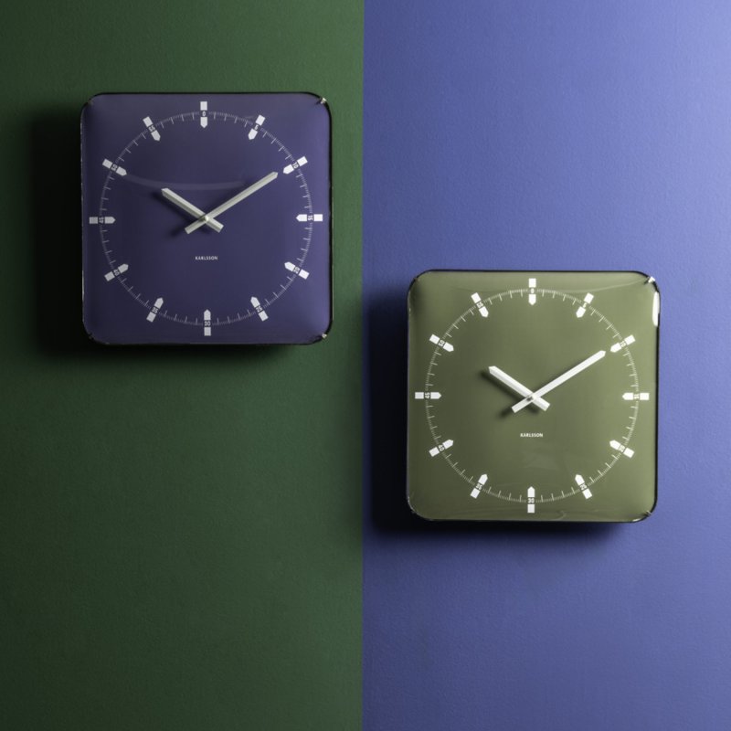 The Sucinto Dome Square by Karlsson is a square wall clock with rounded corners and a spherical glass top.